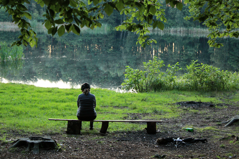 I nagle lądujemy nad jeziorem, do którego prowadzi ścieżka z 20-30 metrowym spadem. Notabene, Seba zalicza glebę, przez co nie chciał później jeszcze ciutkę popozować do zdjęcia z dołu.